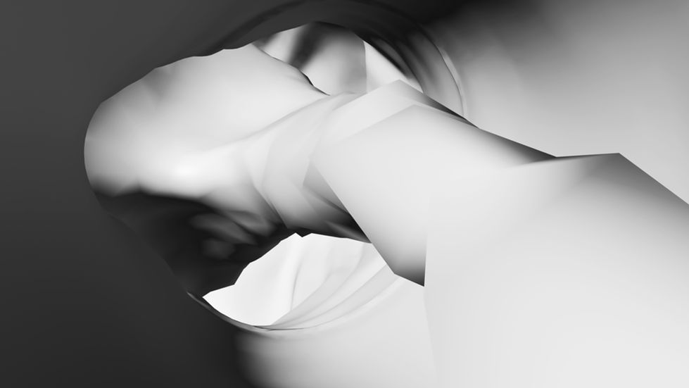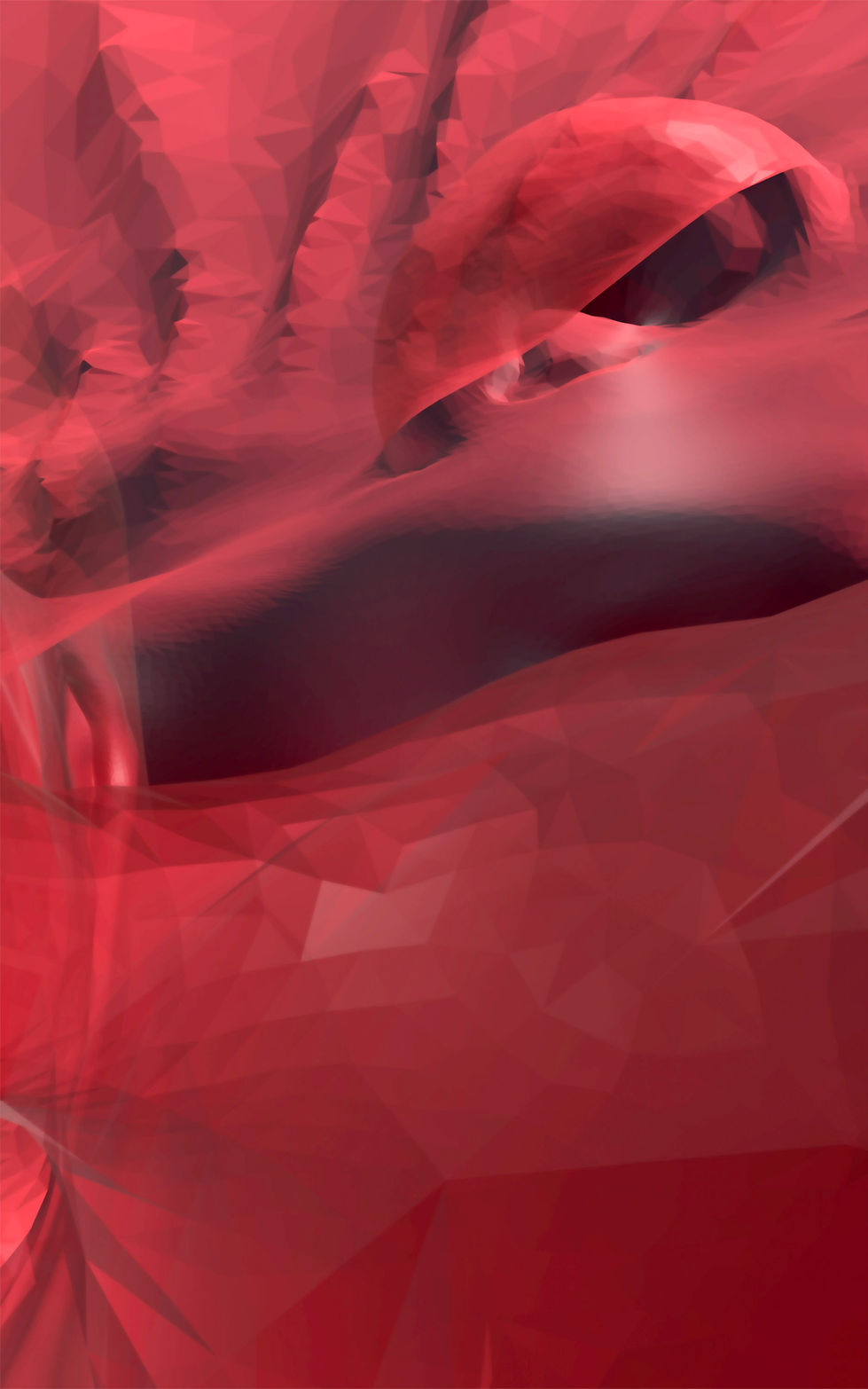 I invite you to delve into a computer-rendered interior of my own body. During a technological regime insistent on smoothing the imperfections of humaneness, this body of work depicts the impersonality of replication. You see cavernous gray spaces within the torso, head, and legs where organs, blood, and nerves would be. The images look in turn as familiar as a western American landscape and as haunting as an empty womb, calling into question the value of the American dream while it devalues human life in favor of computer driven technologies.